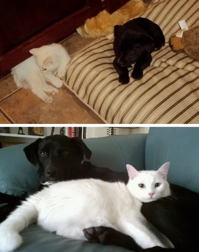 When you have pets, they’re like each other’s siblings in a way. And after looking at these photos of dogs and cats growing up together, you’ll realise the bond between animals is real.
