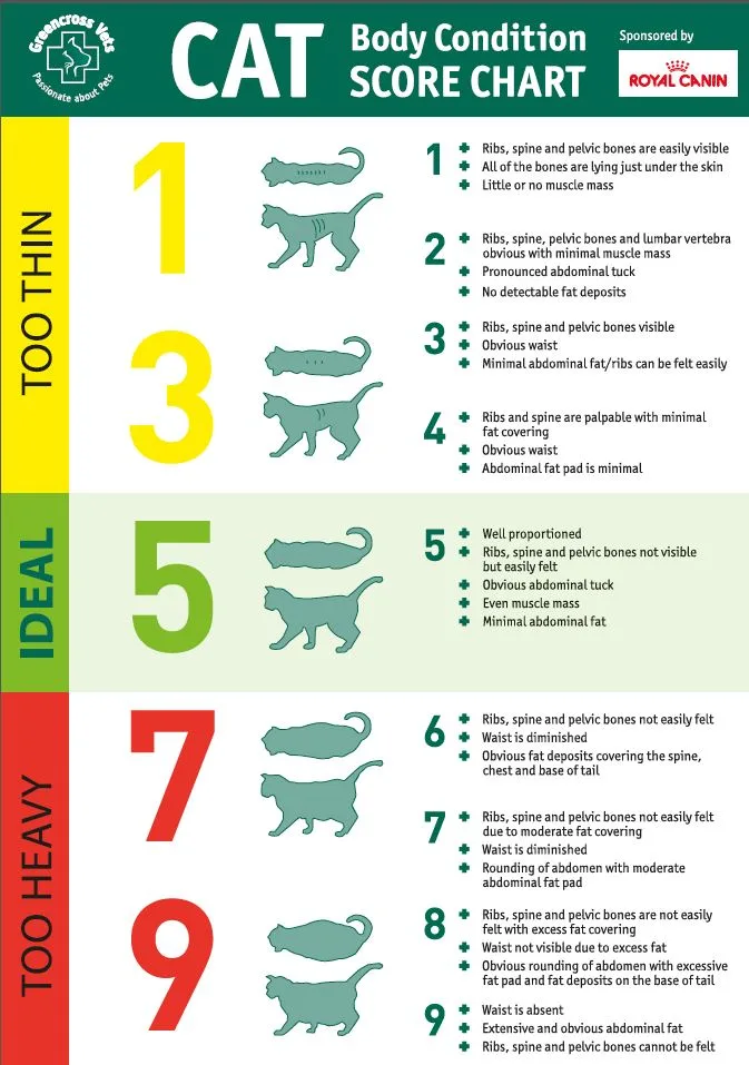 The Body Condition score chart for cats.