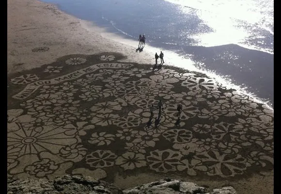 The last thing Kelly Riplinger expected to see after reaching the top of a hill with her boyfriend was this masterpiece staring up at her. Her romantic partner commisioned an artist to design the beautiful sand proposal. She said yes. Photo: Jamie Shiller.