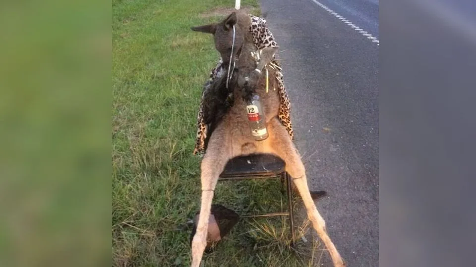 This comes just six months after a kangaroo was found shot dead, tied to a chair and dressed up on a roadside in Melbourne.