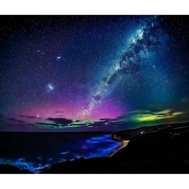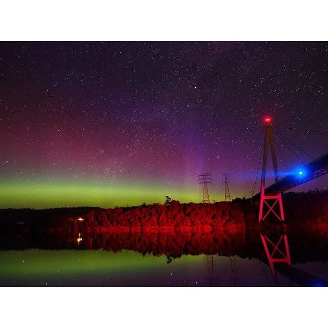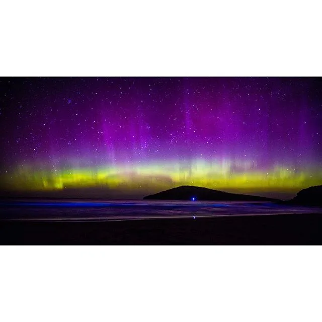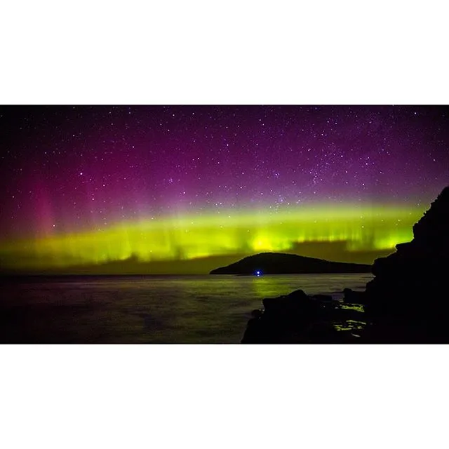 The mesmerizing sight appeared over the skies of Tasmania and Southern Victoria last night, leaving the night sky purples, green, yellow, blue and pink.