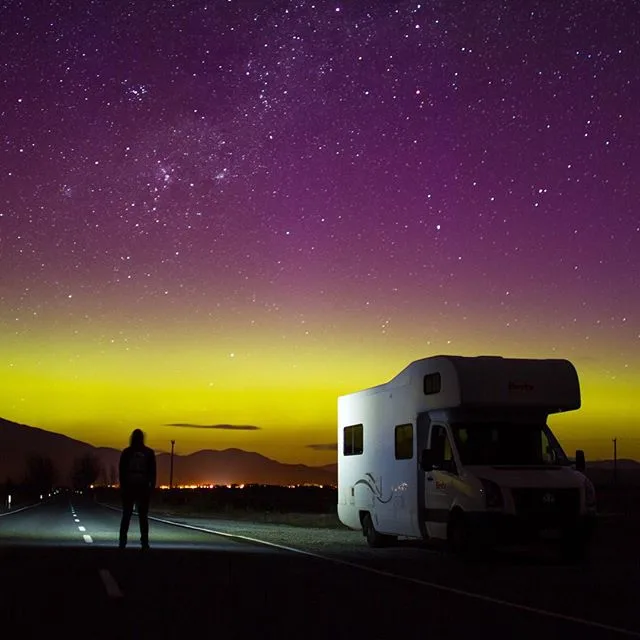 @johny.cook: Last minute decision yesterday evening to make a dash over to Mt Cook. Saw something in my rear view mirror and delighted it was the lights.