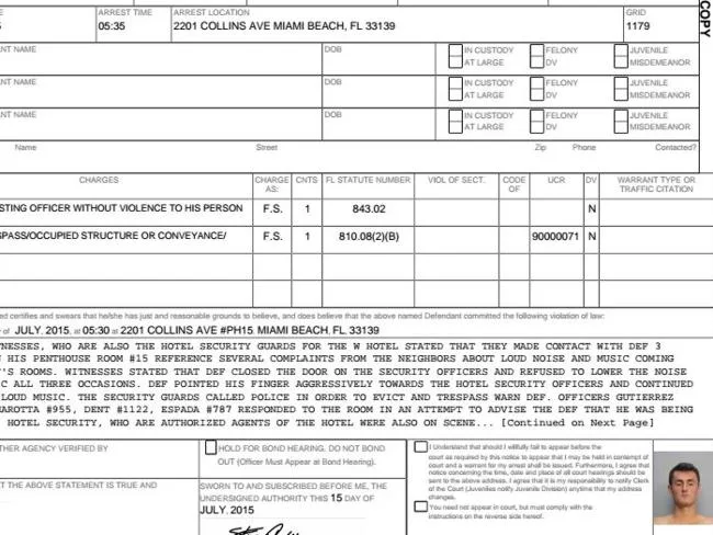 The 22-year-old was arrested by Florida police after they responded to hotel security, who claim he became “aggressive and belligerent” when asked to turn his music down.