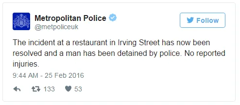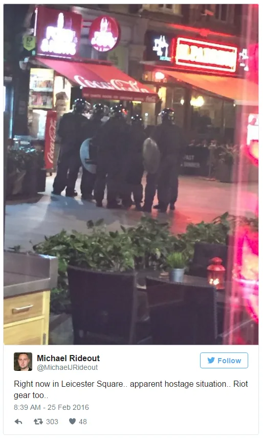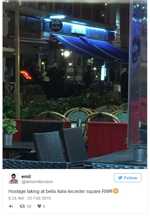 Earlier reports emerged suggesting the man had claimed he had a knife in the Bella Italia restaurant in Leicester Square, and was holding at least one person against their will.
