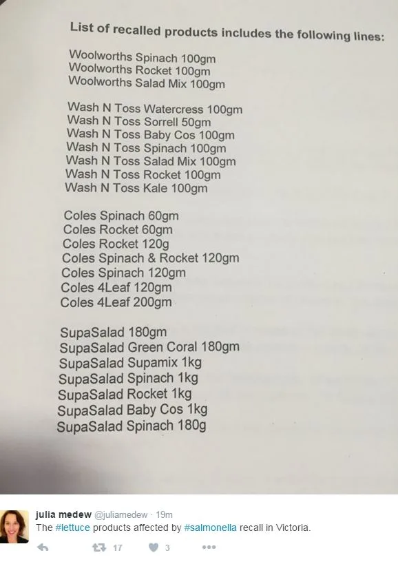 The lettuce is sold at Coles and Woolworths as Coles 4 Leaf Mix, Woolworths salad mix, SupaSalad Supamix and Wash N Toss salad mix.
