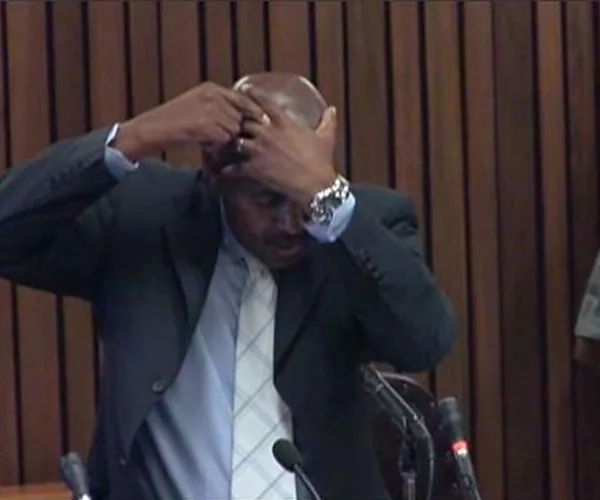 Cpt Mangena goes on to describe how he believes Steenkamp then fell onto a seated position on top of a magazine rack, and the knowledge of this prompted Pistorius to change directions and fire three more shots, including a fatal head shot.