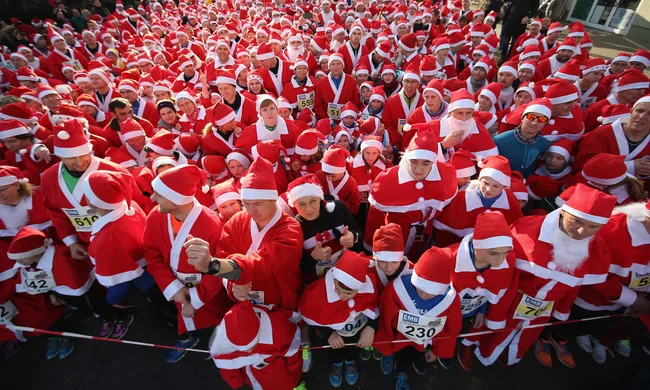 Santas take their positions in the 7th annual Michendorf Santa Run in Germany.