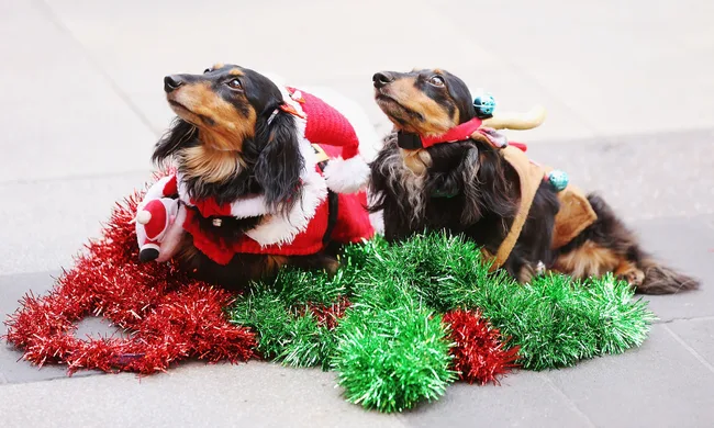 Sausage dogs rest in the shade during the Festive Best Dressed Dog Competition for The Lost Dogs’ Home charity in Melbourne, Australia.