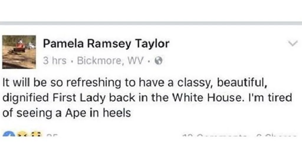 A Facebook post referring to FLOTUS as an “ape in heels” has sparked calls for a West Virginia businesswoman and a local mayor to stand down from their positions, according to NBC affiliate WSAZ.