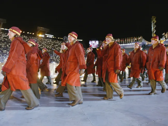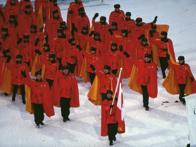 The Soviet Union team march into the Bergisel Stadium in Innsbruck, 1976.