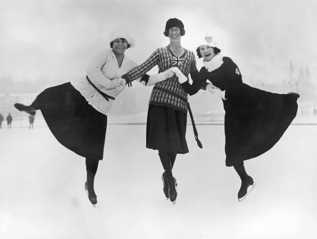 Figure skaters at the 1924 Winter Olympics in Chamonix, France. Photo: Topical Press Agency/Hulton Archive/Getty Images