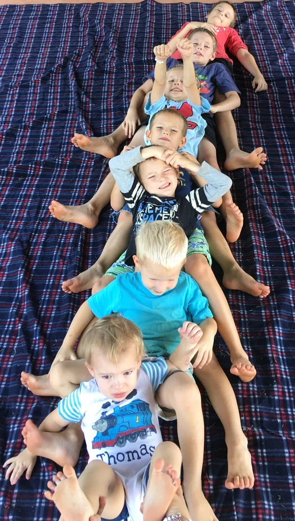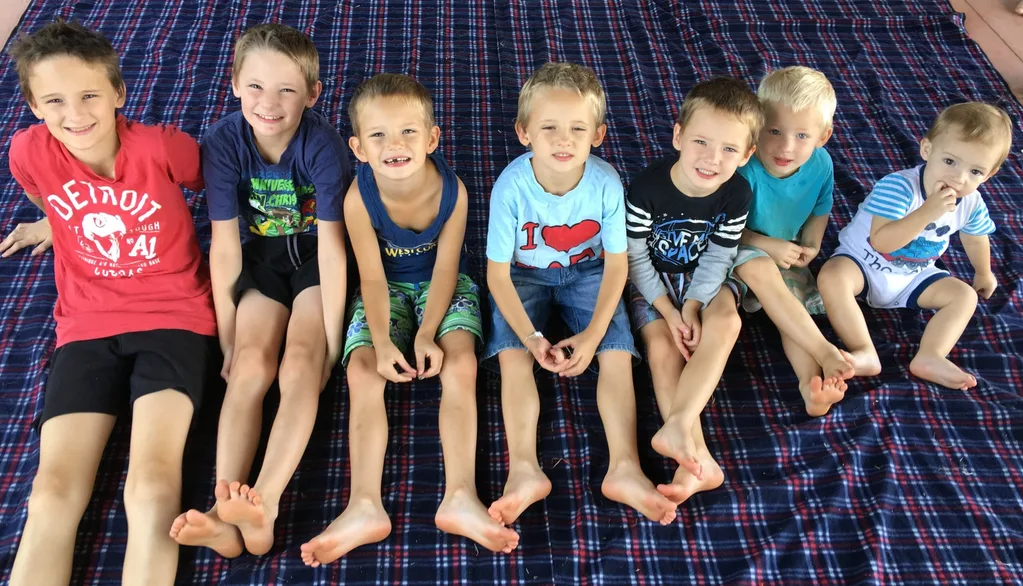 From left: Tristan, 11, Daemon, 10, Blaire, 6, Chase, 6, Logan, 4, Zander, 3, and Elijah, 1.
