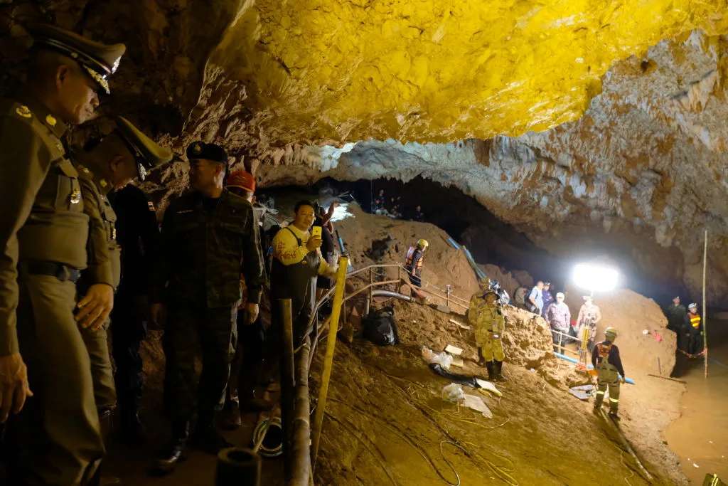 Workers begin their rescue efforts to free the trapped soccer team. (Image: Getty)