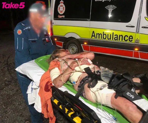 Paramedics airlifted me to Toowoomba Hospital where doctors revealed I had three broken ribs, a lacerated liver, a collapsed lung and huge gashes to my thighs, breasts and head.