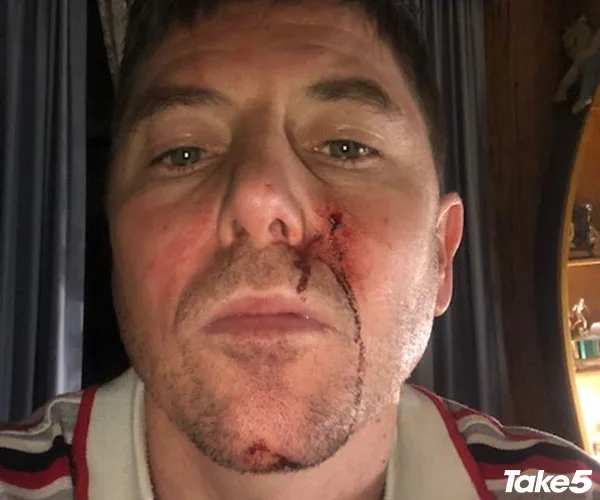 Jim’s kangaroo-inflicted injuries.