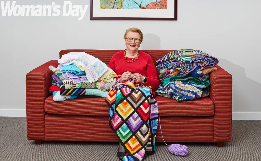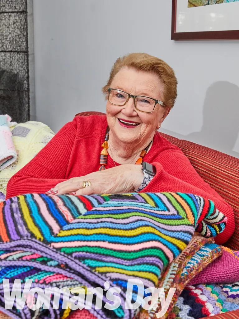 Balls of yarn and handknitted blankets in every colour of the rainbow are piled high in Margaret Addicoat’s cosy home.