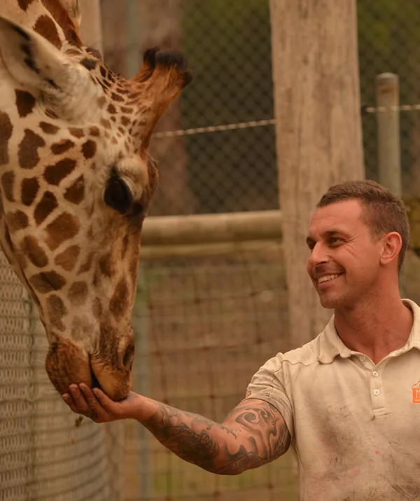 Dedicated zoo keeper Chad stayed put in the fires, risking his life to save his animals.