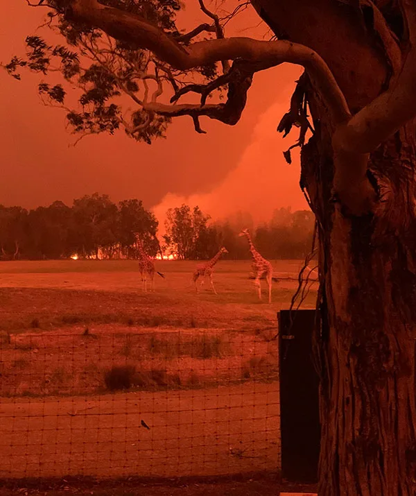 It’s an iconic image from the bushfires that has both touched and broken the hearts of millions across the world. A frightened herd of giraffes shrouded in thick smoke as they stood powerless and trapped while the fires raged around them.