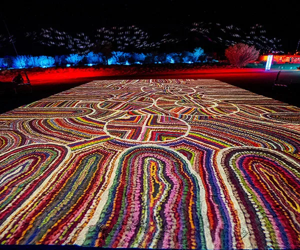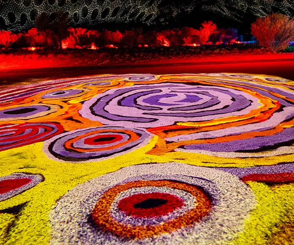 Using one of Alice Springs’s most defining landscapes as a canvass, the 2 km light show was a mesmerising backdrop for other pieces, like an installation that projects light from above onto the rich red desert sands.
