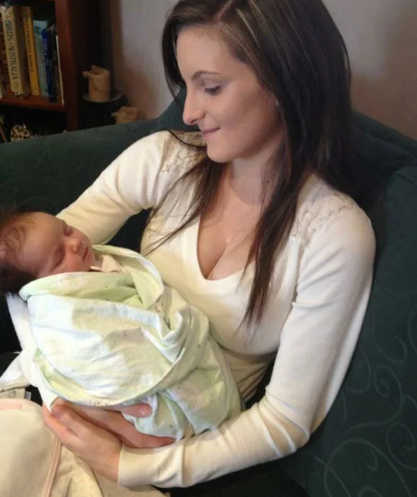 Ebony at 16 with newborn Ruby.