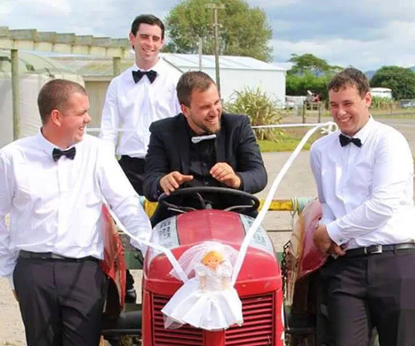 Afterwards, we travelled with our bridal party back to Quentin’s farm to take photos in the old cow shed where we’d first met.