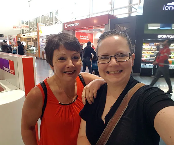 Me and my daughter waiting for Guido at the airport.