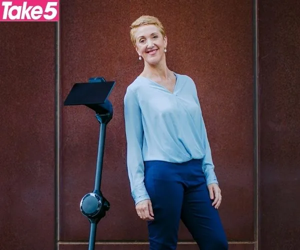 (Image: supplied)The robot on wheels works by using tablet technology on a stand.