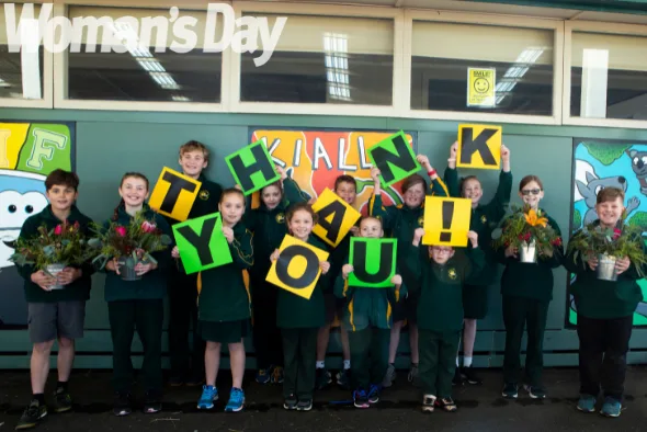 “We never expected such a wonderful outpouring of thanks,” principal Debbie Humphries – or Miss H as the kids prefer – tells Woman’s Day from the school’s playground where the students have gathered to pay tribute to the dedicated staff who supported them during these recent tough times.