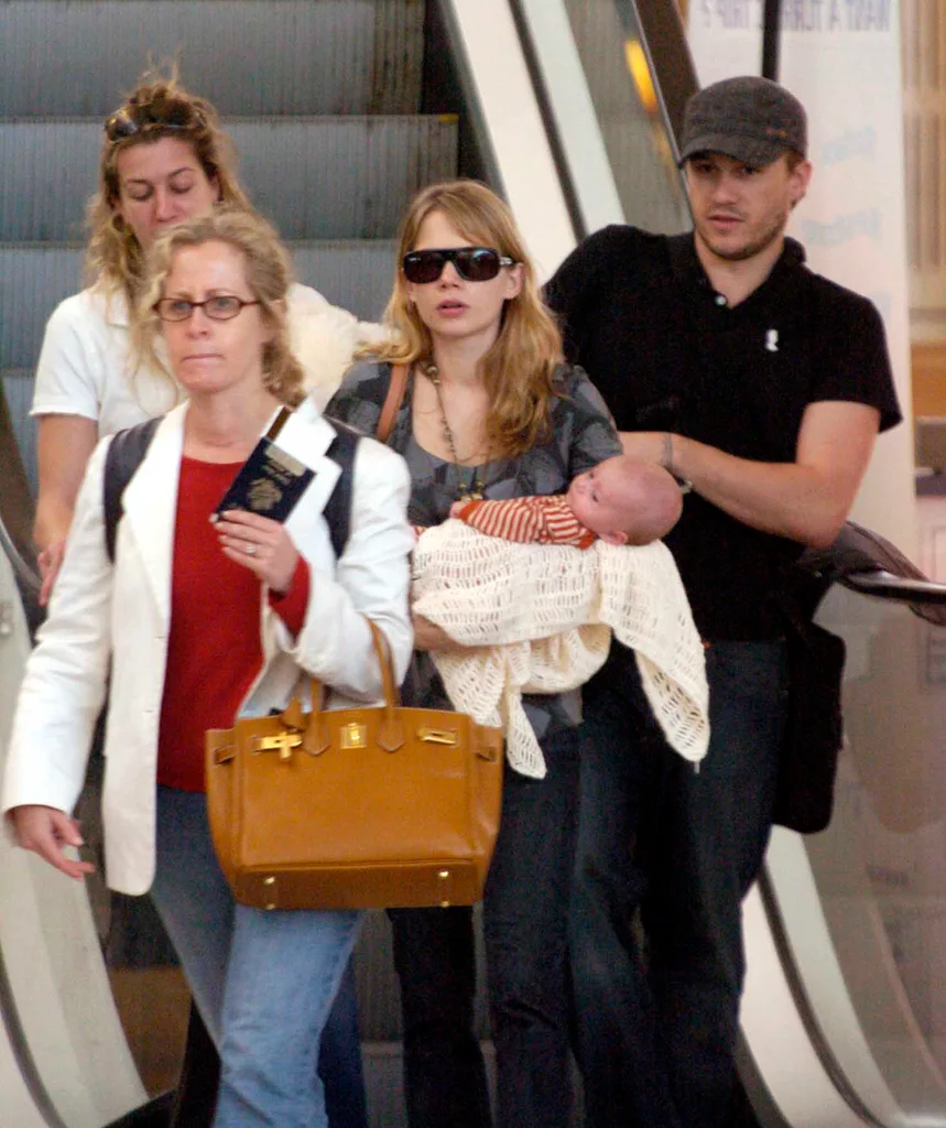 Heath Ledger leaves Sydney with Michelle Williams and daughter Matilda in 2006.