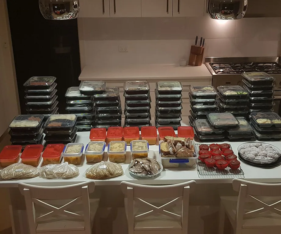 After their mammoth effort of 20 hours in the kitchen, (“The prep time was the most time consuming and the cook time was far less”) Melissa posted a snap of all the meals they’d created, neatly packed in reusable containers, to the Facebook group Mums Who Budget & Save.