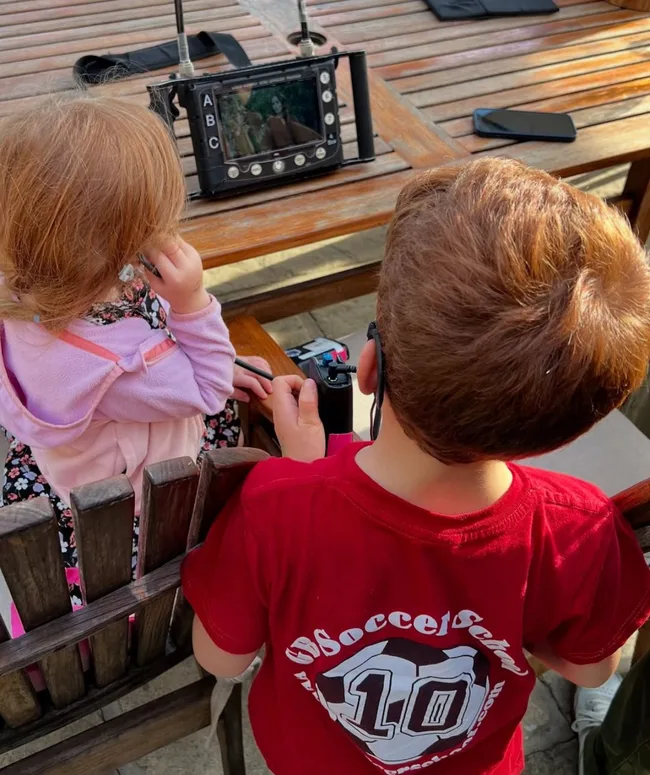 Lilibet and her big brother Archie watched their mum intently while she filmed.