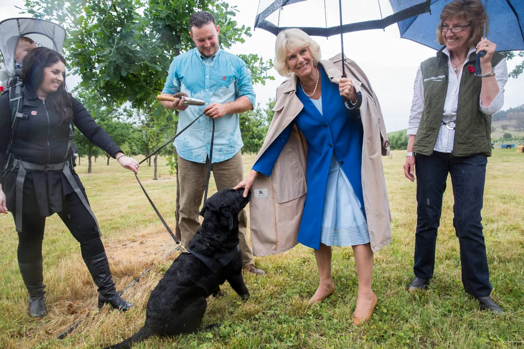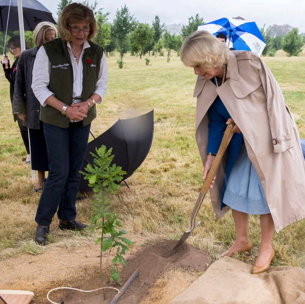 After standing out in steady rain at the Remembrance Day Service, I have to say that when I arrived at a sodden paddock, around 15 minutes from central Canberra, to see a makeshift kitchen in a shed and a tented canopy sheltering a shovel beside an English oak sappling as well as a few bales of hay at a distance, I wondered how on earth the Duchess of Cornwall was going to pull off this extremely outdoor visit to the French Black Truffles of Canberra.