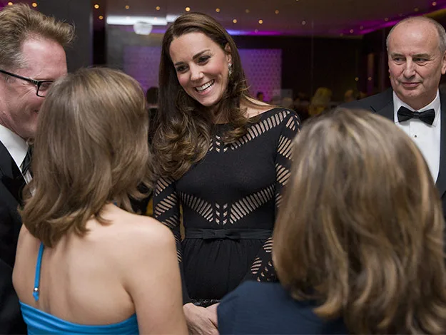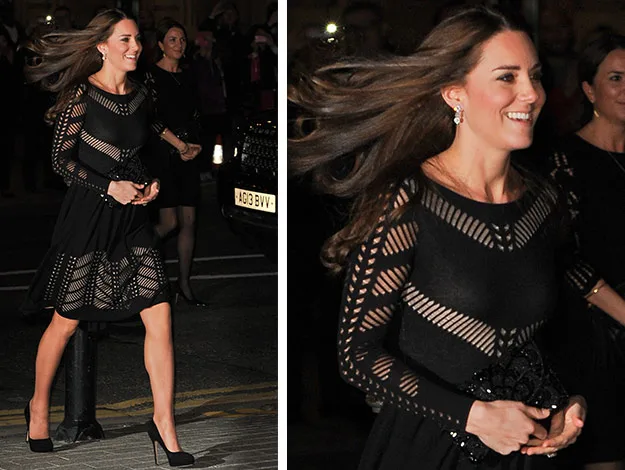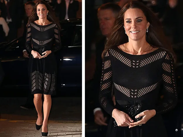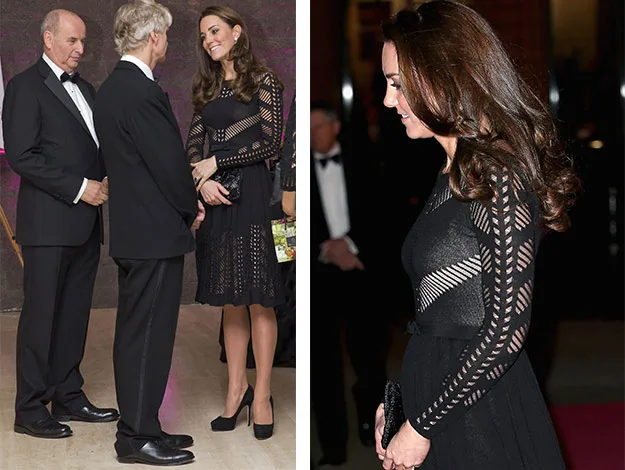 Duchess Catherine teamed the outfit with black pumps and jeweled black clutch, wearing her hair in her signature style.