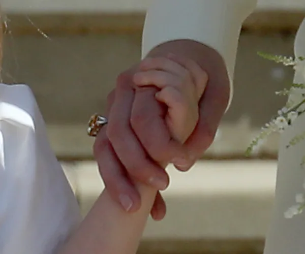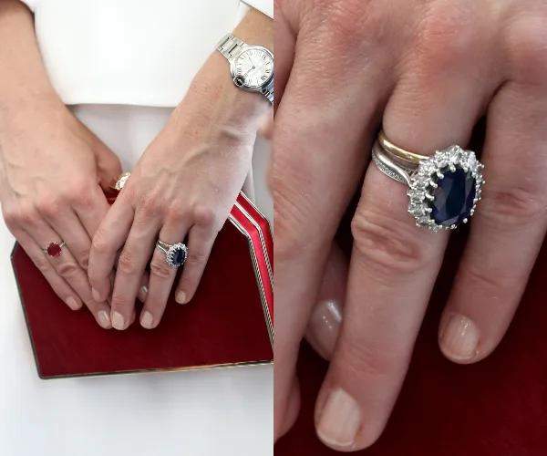The Duchess of Cambridge made a stunning appearance at the royal wedding over the weekend in a creamy, pale-yellow Alexander McQueen dress — a look we’ve seen from the master of sustainable fashion three times previously. She accessorised the look with a pretty floral headpiece, eggshell-coloured pumps and — as eagled-eyed fans have only now picked up — a massive new ring on her right hand.