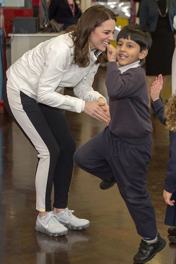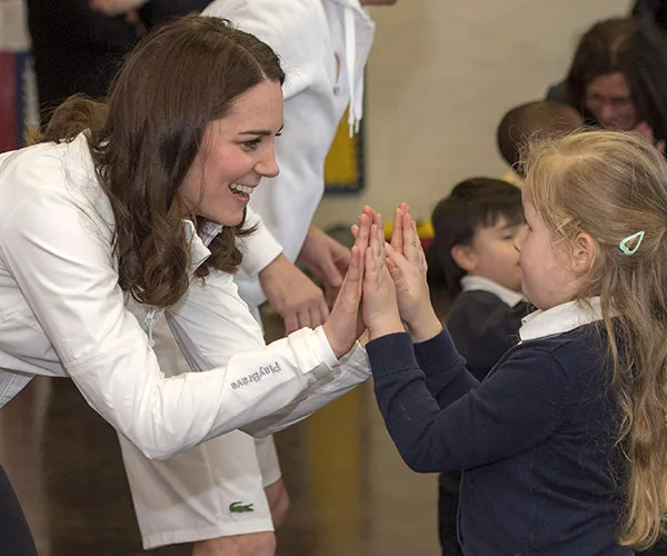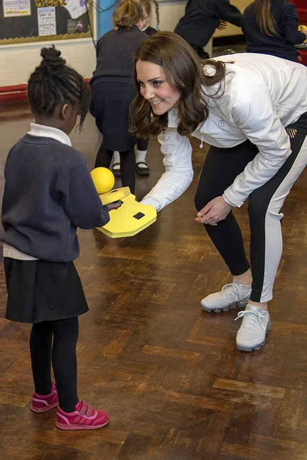 Stepping into her role as royal patron for Wimbledon, the soon-to-be-mum-of-three was observing the work of the Wimbledon Junior Tennis Initiative at Bond Primary School.