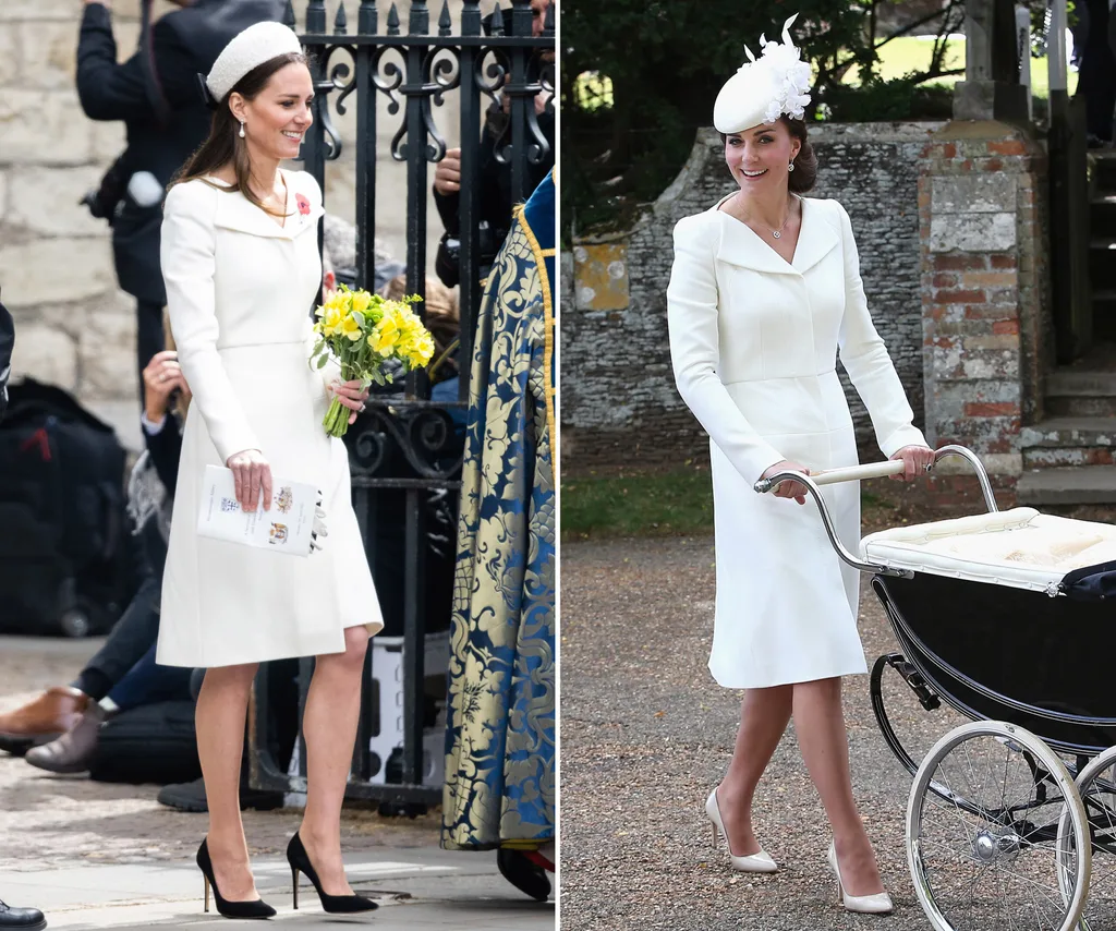 The Duchess of Cambridge rewore this Alexander McQueen frock, which she previously donned for Princess Charlotte’s christening.