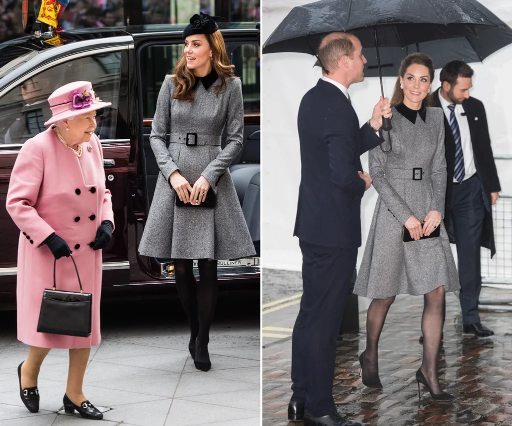 We first spotted the duchess in this cosy grey number in March 2019, when she joined Her Majesty for their first ever joint engagement at King’s College University in London.