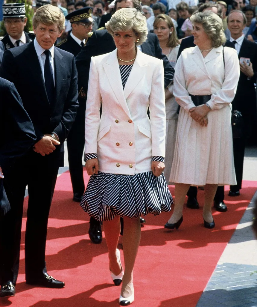 Princess Diana was known for her chic fashion sense and was often spotted in pristine white blazers, which she would pair with everything from tailored skirts to flowing dresses.