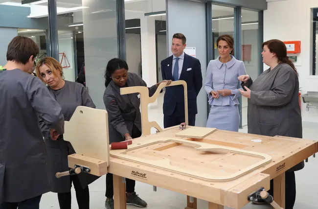 Kate’s final appointment for her busy Netherlands visit was a visit to Bouwkeet in Rotterdam – the social Makerspace of Bospolder-Tussendijken. The initiative provides workshop spaces for creativity and design in the economically deprived district and the Duchess seemed impressed as she met with youngsters who were engaged in activities such as bike mechanics and robotics.
