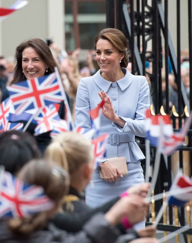 Kate greets fans at a street reception.