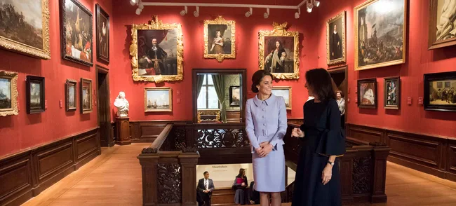 The Duchess of Cambridge visits the Art Workshop where children were having a painting lesson in the Mauritshuis Gallery