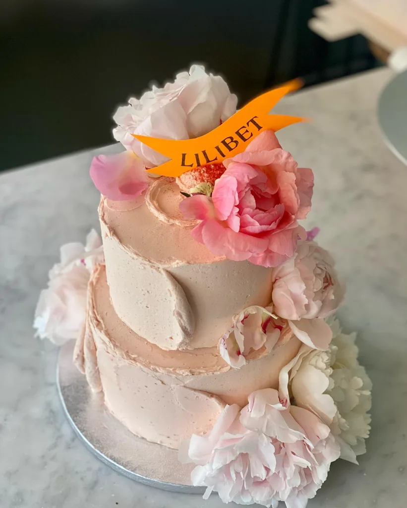 “The inside was the Amalfi lemon and elderflower cake I created for the Duke and Duchess’s wedding in 2018, but this time we covered it with a strawberry buttercream specially for Lilibet. ?”