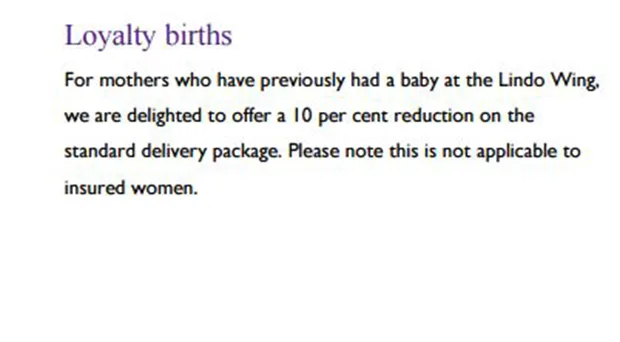 But after looking at the fine print The Weekly understand the discount is only given to mothers who are uninsured and who are choosing a standard delivery room – not a deluxe package.