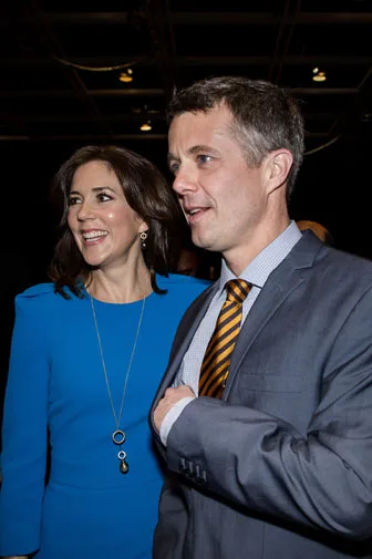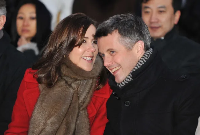 Crown Prince Frederik and Crown Princess Mary share a joke in Beijing.