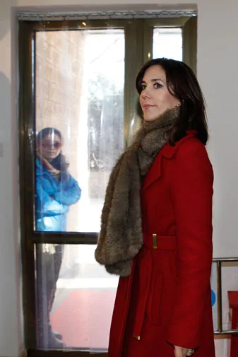 Mary looked stunning in a red coat in Beijing.