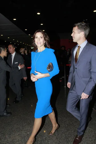 Mary looked radiant in electric blue in Hong Kong.