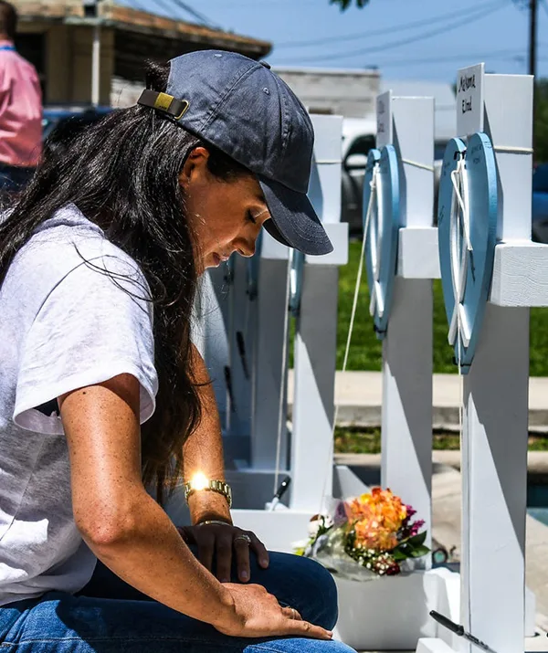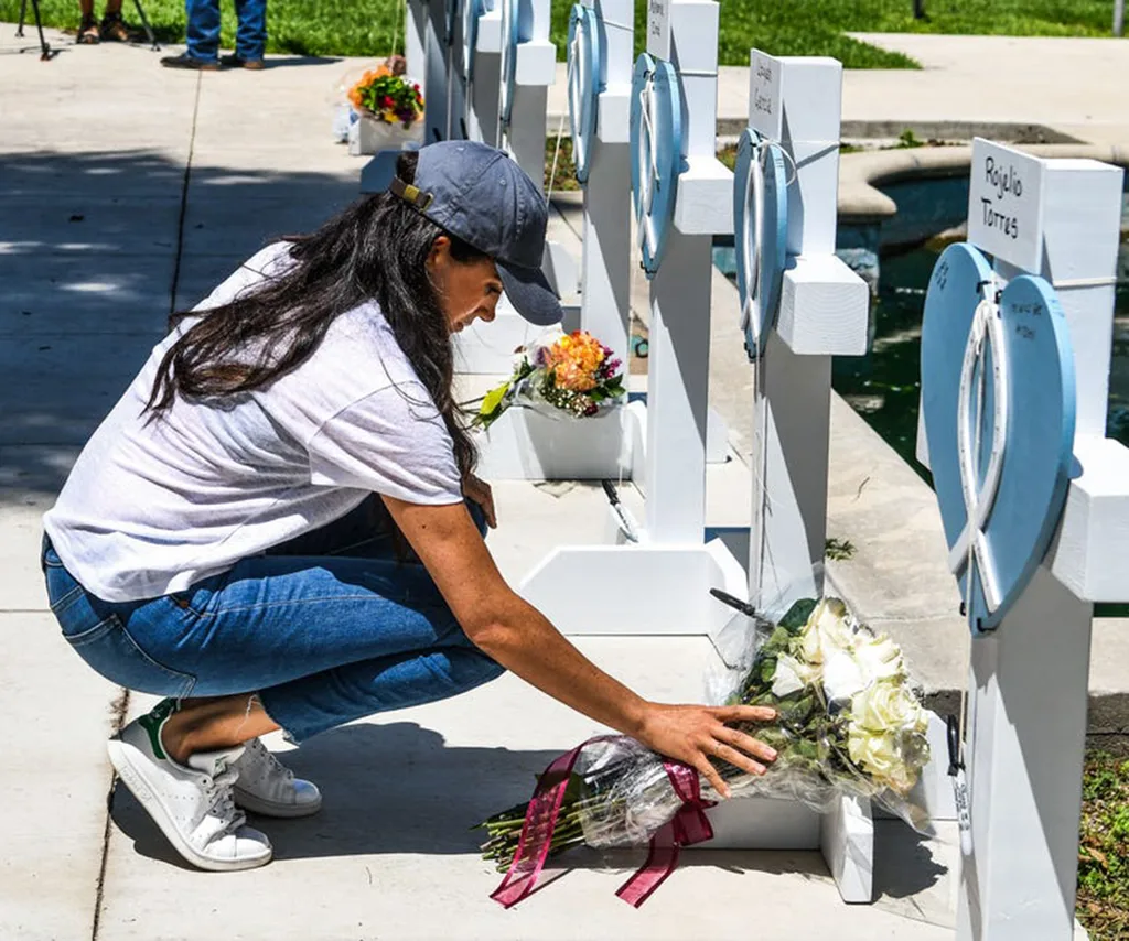 Meghan, Duchess of Sussex has visited Uvalde in Texas to honour the 19 elementary school students and two teachers who were killed in a tragic mass shooting on Tuesday.