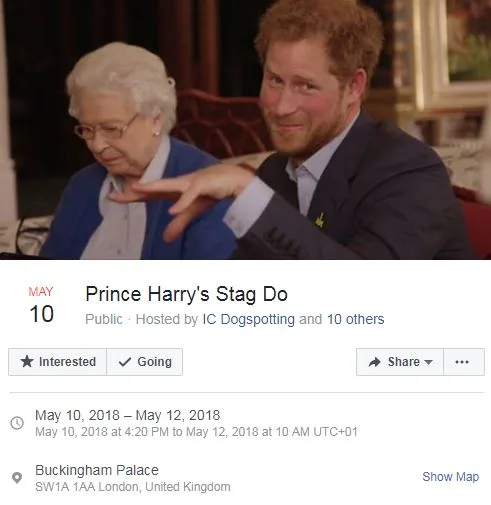 Ladies and gentleman, we have been blessed with Facebook invitations to both Meghan Markle’s Bachelorette Party and Prince Harry’s Stag Do.