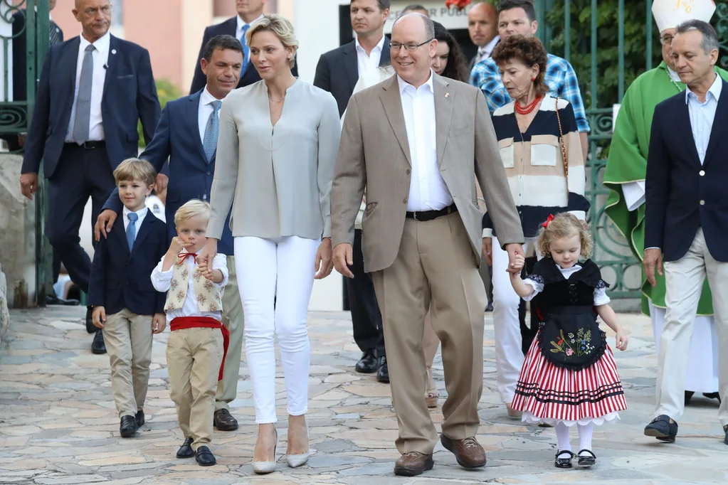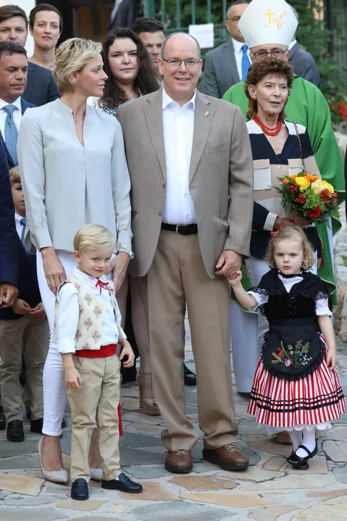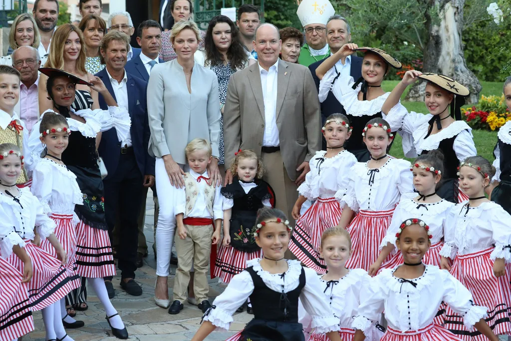 The blonde tots accompanied their parents Prince Albert and Princess Charlene to the town’s end of summer picnic, dressed in traditional costume.