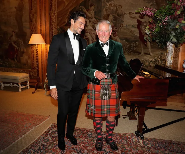 The Prince of Wales donned a traditional Scottish kilt and velvet jacket as he hosted a private dinner attended by British supermodel, David Gandy.